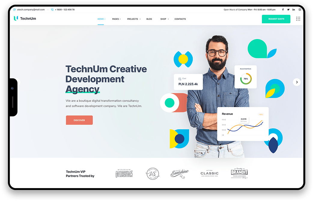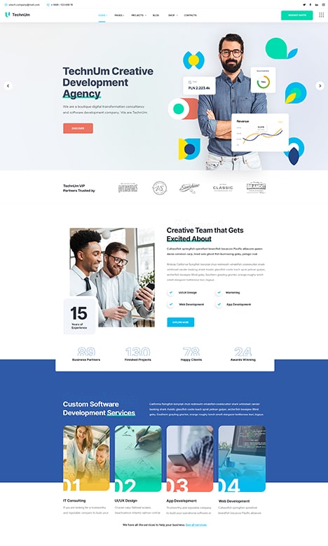 Technum WordPress Theme includes more than 100 wonderful elements for building different creative pages and blocks for your website